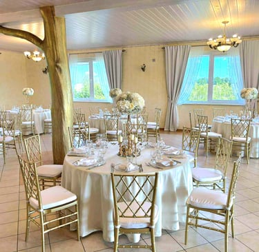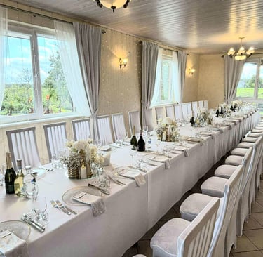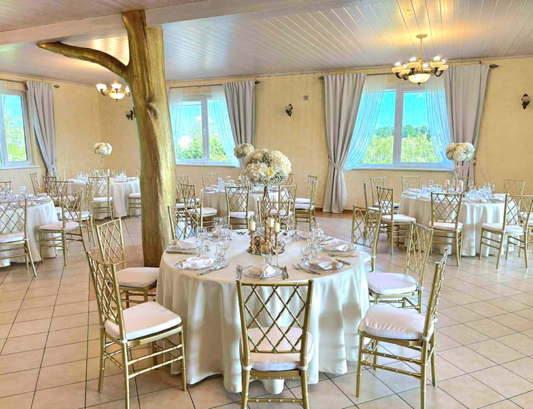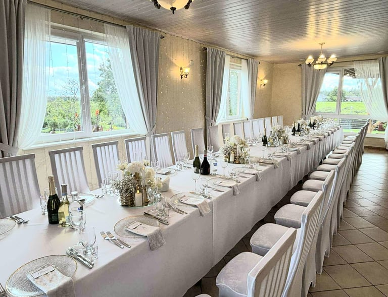 Erdvi pokylių salė talpina iki 80 žmonių, puikiai tinka vestuvėms, krikštynoms ir gimtadieniams.